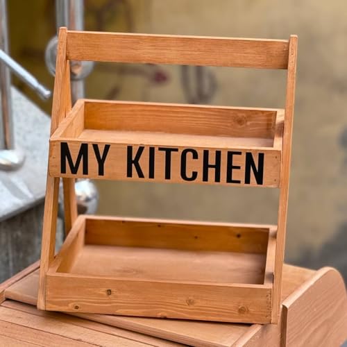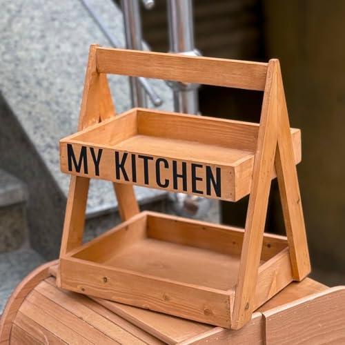 Generic - حامل تخزين خشبي ماي كيتشن من جينيريك، منظم هرمي بطبقتين، 41 × 36 × 26 سم، خشب الزان