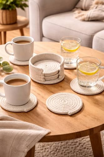 - مجموعة كاملة من 5 قطع: تتضمن 4 قواعد أكواب مستديرة وسلة حامل مطابقة تحافظ على قواعد الأكواب منظمة بشكل أنيق ويسهل الوصول إليها عند عدم الاستخدام