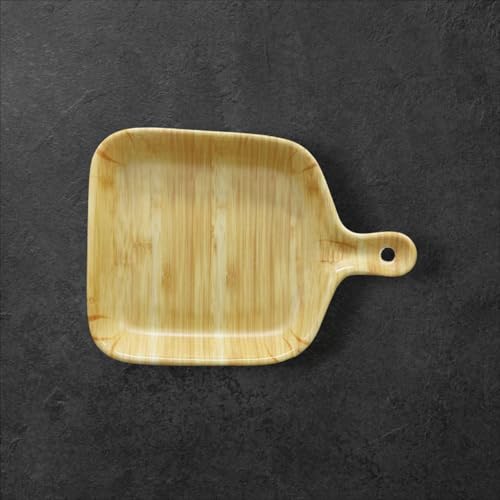 Generic - لوح تقديم من خشب طبيعي وملامين، طبق للوجبات الخفيفة للمطبخ بتصميم ريفي مع مقبض، لوح تقطيع مربع للشواء والترفيه