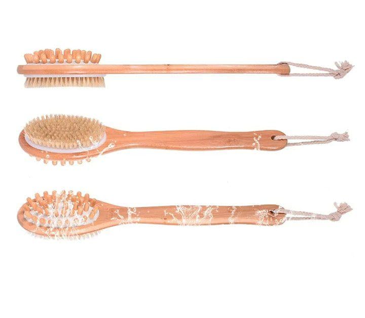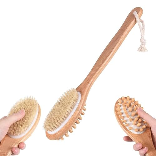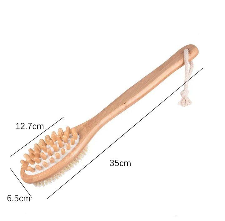 - وظيفة مزدوجة: يجمع التصميم 2 في 1 بين فرشاة التدليك بشعيرات طبيعية وفرشاة استحمام لتنظيف وتقشير شامل للجسم