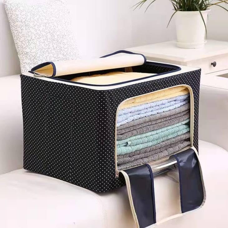 Generic - جيني صندوق تخزين ازرق كحلي مع اطار معدني، منظم محمول للملابس وتنظيم المنزل
