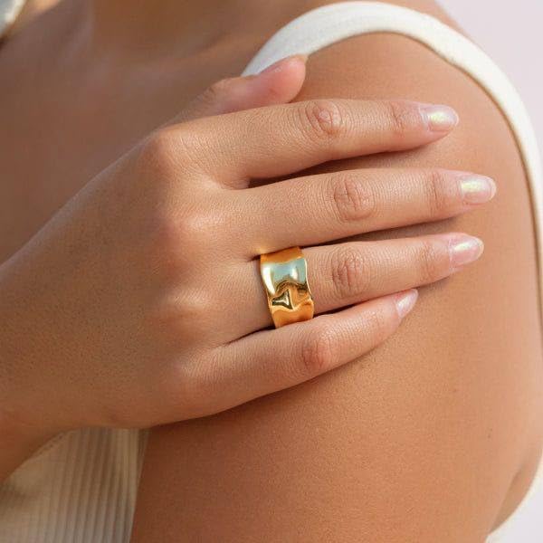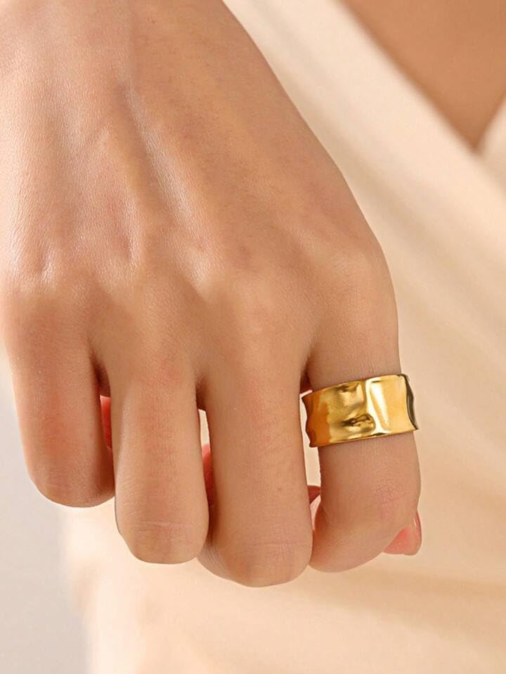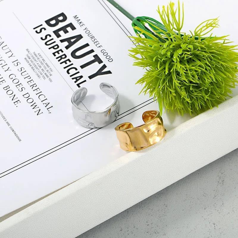 Generic - خواتم زوجين كورية جديدة عصرية غير منتظمة للنساء بلون ذهبي ابداعي، معدن