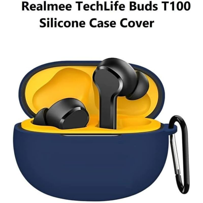 Generic - جراب سيليكون ناعم متوافق مع سماعات ريلمي تيك لايف بادز T100 من نايك - ازرق