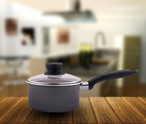 Generic - قدر طهي سيراميك مقاوم للالتصاق مع غطاء زجاجي، 18 سم، رمادي