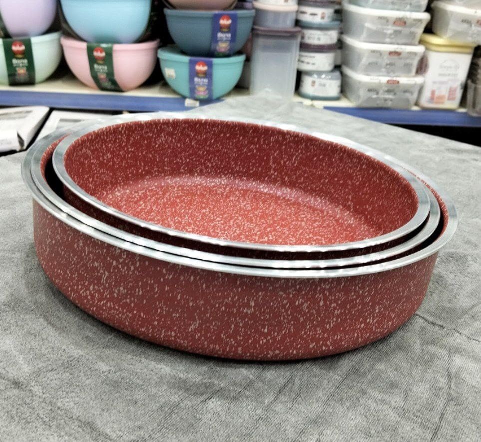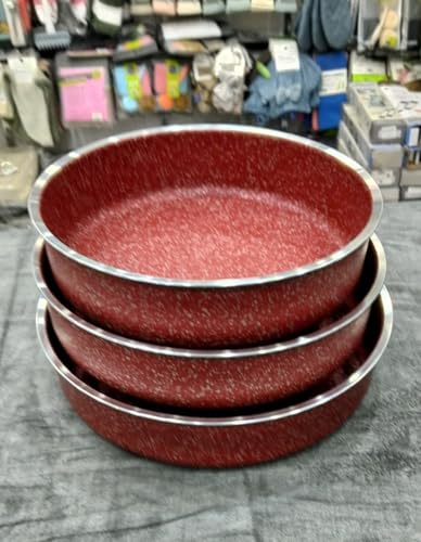 Generic - طقم صواني خبز جرانيت غير لاصقة مقاومة للحرارة 26/28/30 سم، منقط أحمر