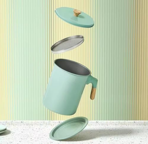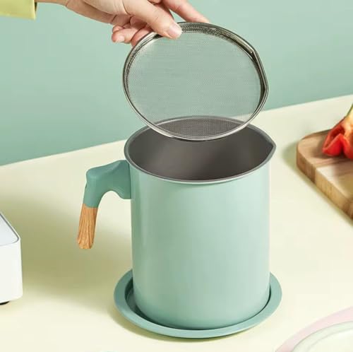 Generic - شفشق لتصفية الزيت مع مصفاة من الفولاذ المقاوم للصدأ، سعة 1.7 لتر، لون أخضر مينت مع مقبض خشبي