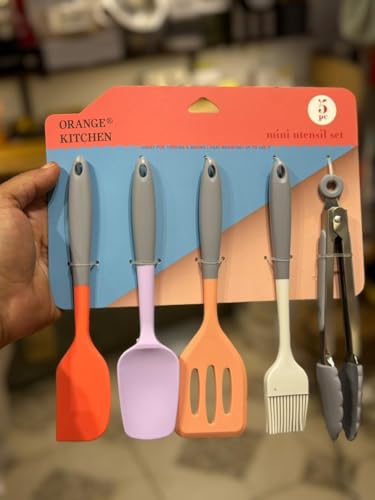 Generic - أدوات مطبخ صغيرة، طقم توزيع A2 من السيليكون مقاوم للحرارة مع ملعقة سباتولا وملعقة لتقليب الطعام وفرشاة دهن وملعقة ومساكة طعام من اورانج كيتشن - طقم من 5 قطع