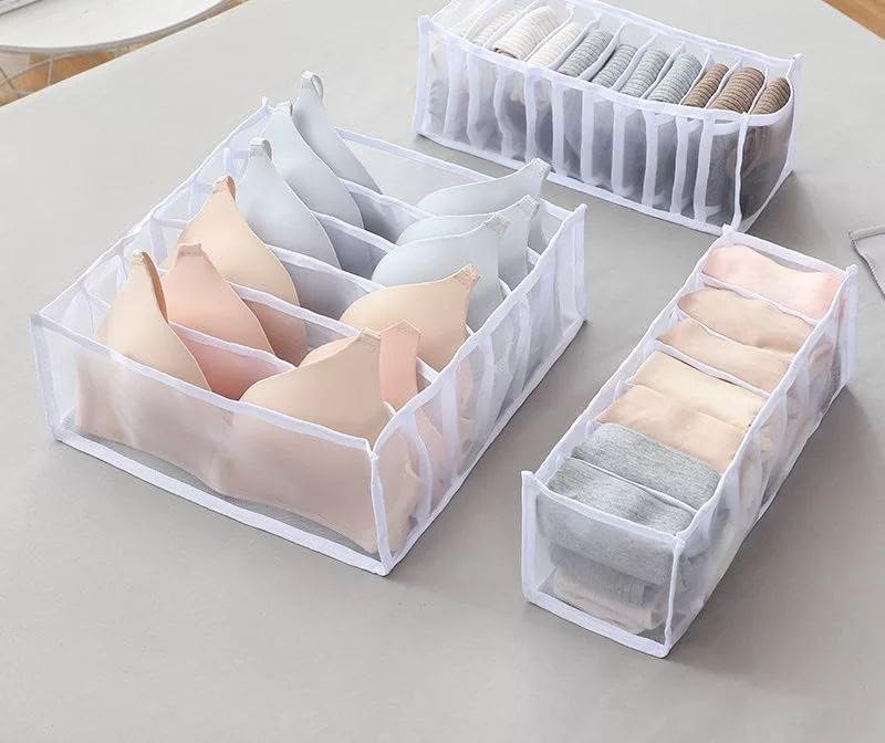 - مجموعة متعددة الاستخدامات: حل تخزين كامل يتضمن 3 منظمات شبكية مختلفة الحجم مثالية للملابس الداخلية وحمالات الصدر والجوارب والمناشف