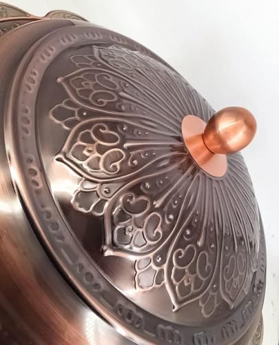 - غطاء نحاسي أنيق يعطي للصينية مظهراً جذاباً ويمكن استخدامه لتقديم مجموعة متنوعة من الأطعمة.
