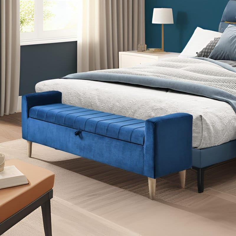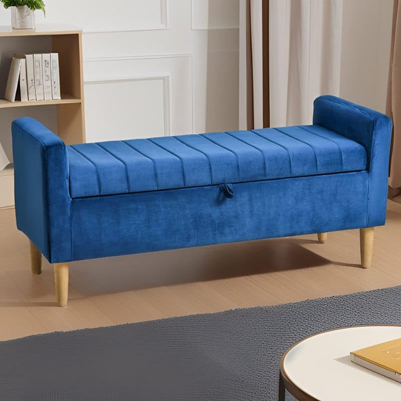Homz - مقعد عثماني مبطن للتخزين بأرجل خشبية، 1.20 م، كحلي