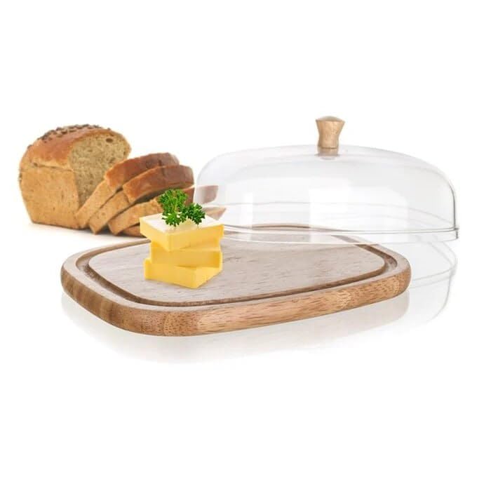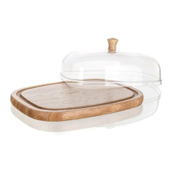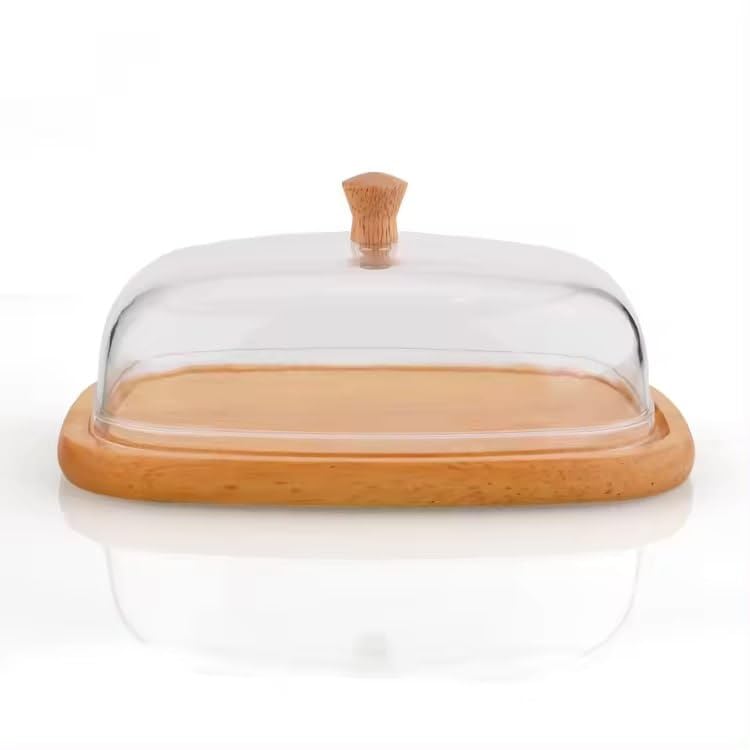 - وعاء حفظ الزبدة من الاكريليك أو وعاء الزبدة مع غطاء من الخيزران، قابل للاستخدام في الميكروويف، مستورد، شكل بيضاوي عالي الجودة متاح، مقاس بيضاوي 16 × 12 سم