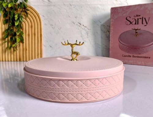 - تصميم أنيق: يتميز بونبونير الزهري بجزء خارجي مبطن جذاب مع زخرفة غزال ذهبية مزخرفة على الغطاء، مما يضيف لمسة من الرقي إلى عرض تقديمك التقديمي