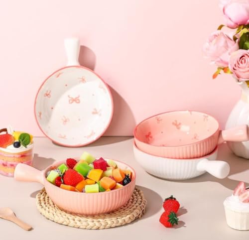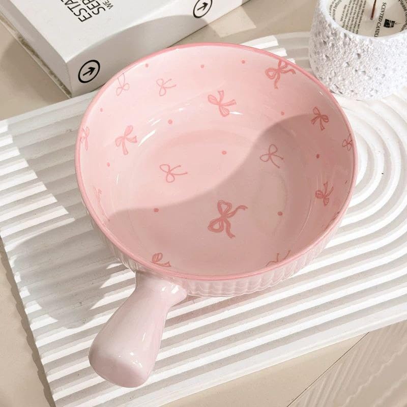 Generic - جيني مقلاة بورسلين بينك بنمط فيونكة، 15 سم، امنة للاستخدام في الفرن والميكروويف، مقلاة بيض بمقبض