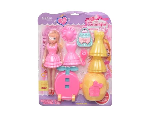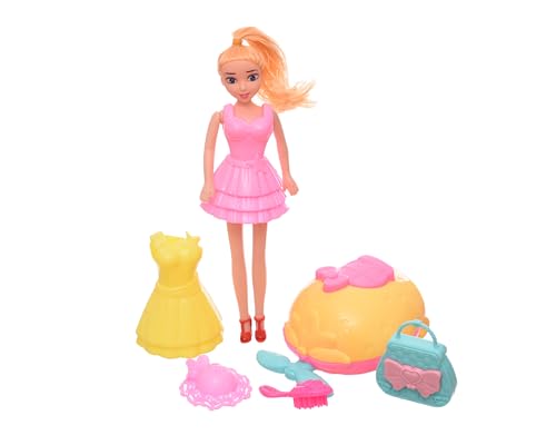Generic - عروسة لعبة بلاستيك بتصميم رائع للمرح مع طاقية صغيرة وثلاثة فساتين للبنات، 8 قطع - متعددة الألوان