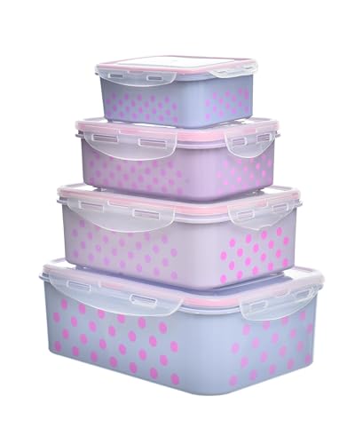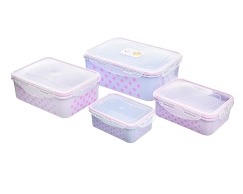 Generic - علب تخزين طعام بلاستيكية بطبعة دوائر صغيرة متعددة الاستخدامات للمطبخ مجموعة من 4 قطع - الألوان