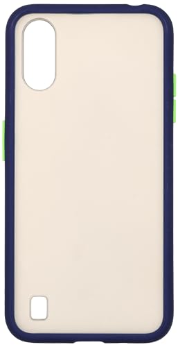 Generic - جراب موبايل خلفي صلب من البلاستيك بحواف سيليكون ملونة وظهر شبه شفاف لموبايل سامسونج جالاكسي A01 /A015F مقاس 5.7 بوصة، لون أخضر كحلي