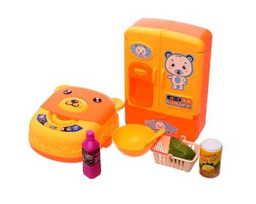 Generic - مجموعة لوازم مطبخ بلاستيك مكونة من ماكينة طبخ على شكل دب مع ثلاجة ومنتجات بقالة لأجل الترفيه للأطفال، مجموعة من 8 قطع - متعددة الألوان