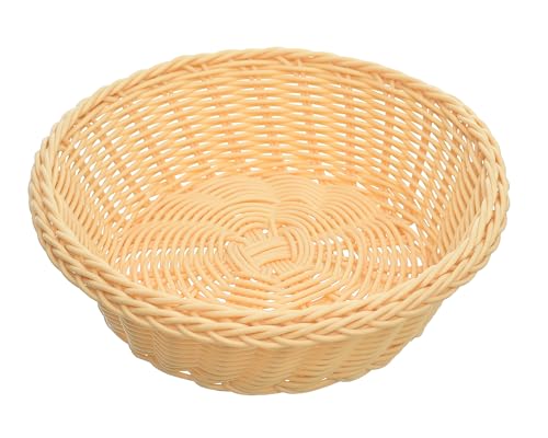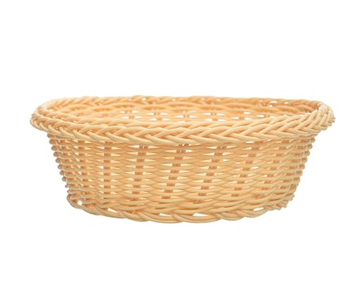Generic - سلة دائرية من البلاستيك متوسطة الحجم مصنوعة يدويا وتضيف المزيد من الأناقة والعملية للمنزل، لون بيج