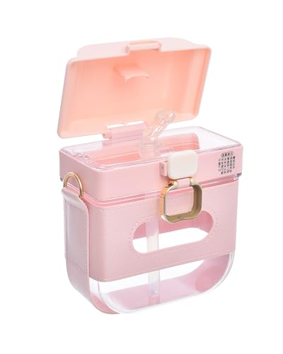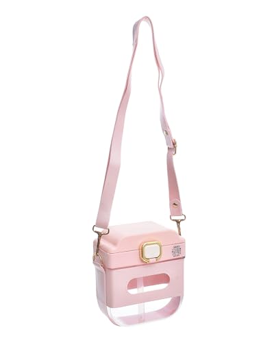 Generic - زجاجة مياه بلاستيكية عصرية مع شريط جلدي قابل للتعديل وغطاء محكم الإغلاق، مناسبة وعملية للسفر، 600 مل - بينك، زهري