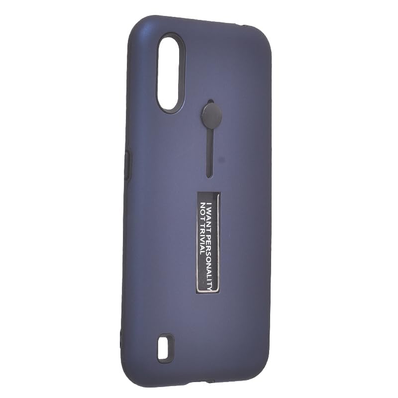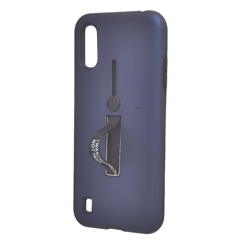 Generic - جراب بلاستيك بحواف سوداء وحامل إصبع سيليكون لموبايل سامسونج جالاكسي A01 مقاس 5.7 بوصة - لون كحلي