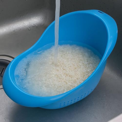 Generic - جيني مصفاة ارز بلاستيكية مع مقبض، مصفاة مطبخ بيضاوية لغسل الارز والخضروات والفواكه والبقوليات، ازرق، .db