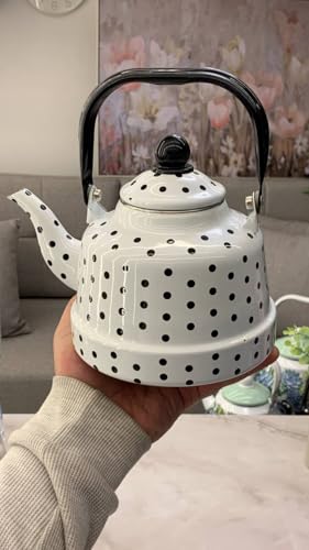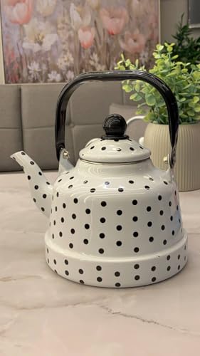 Generic - غلاية شاي منقطة بولكا - سعة 1.5 ل من الصلب الحراري، لون أبيض وأسود