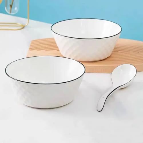 Generic - طقم أوعية بورسلين مع ملعقة، آمن للاستخدام في الميكروويف، أبيض مع حواف سوداء، 4 قطع، ام كيه