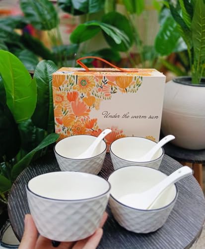 - تصميم متعدد الاستخدامات: مجموعة من 4 أوعية أنيقة من البورسلين الأبيض بحواف سوداء، مثالية لتقديم الشوربة والحبوب والحلويات والمشروبات الساخنة