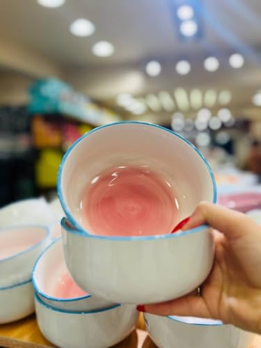 Generic - جيني وعاء بورسلين بحافة زرقاء، جزء داخلي بينك، خارجي ابيض، 6.5 × 15.5 سم، تصميم انيق، روم