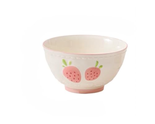 Generic - جيني وعاء بورسلين بتصميم فراولة، حافة بينك باستيل، 5 انش، بار