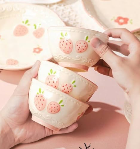 - تصميم ساحر: يتميز بنمط فراولة منقوش رائع على وعاء بورسلين بلون كريمي مع حافة وردية فاتحة رقيقة لإضفاء لمسة حلوة وغريبة على طاولة الطعام الخاصة بك