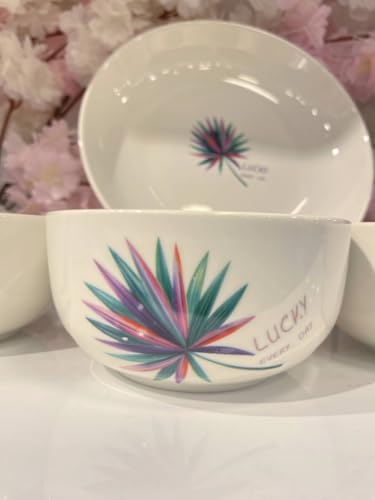 - تصميم أوراق استوائية: تتميز كل قطعة بزخارف أوراق استوائية نابضة بالحياة وملونة مع كلمات ملهمة مثل "Lucky" و "Happy" و "Love" لتجربة طعام مبهجة