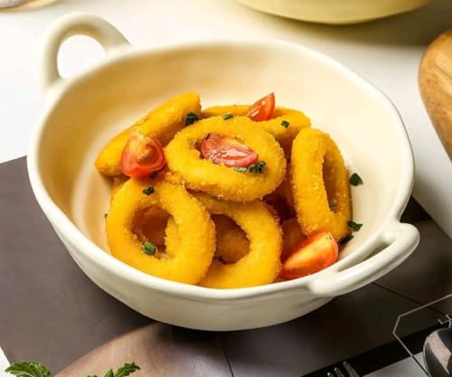 - تصميم أنيق: يتميز طبق خزفي البورسلين الأبيض بتصميم حافة متموجة مميزة ومقابض مزدوجة لسهولة التقديم، مما يجعله مثاليًا لتقديم الوجبات الشهية على طاولة الطعام
