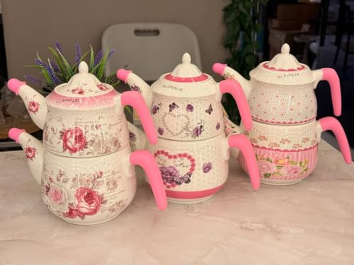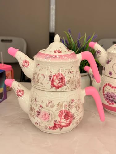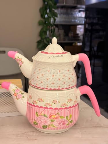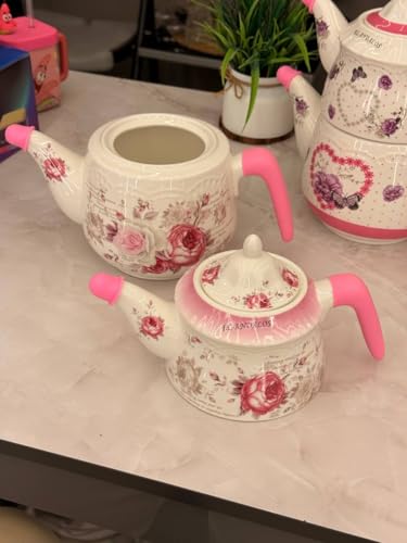 Generic - جيني طقم غلاية شاي مزدوجة من البورسلين، بينك وابيض، 2.5 لتر و1.5 لتر، اباريق شاي حرارية من سوه