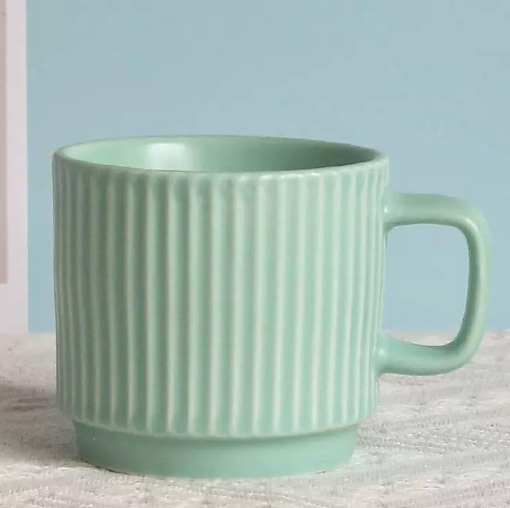 - تصميم أنيق: يتميز كوب البورسلين الأخضر الفاتح بملمس خارجي عصري مضلع يضيف لمسة راقية إلى روتين القهوة أو الشاي اليومي