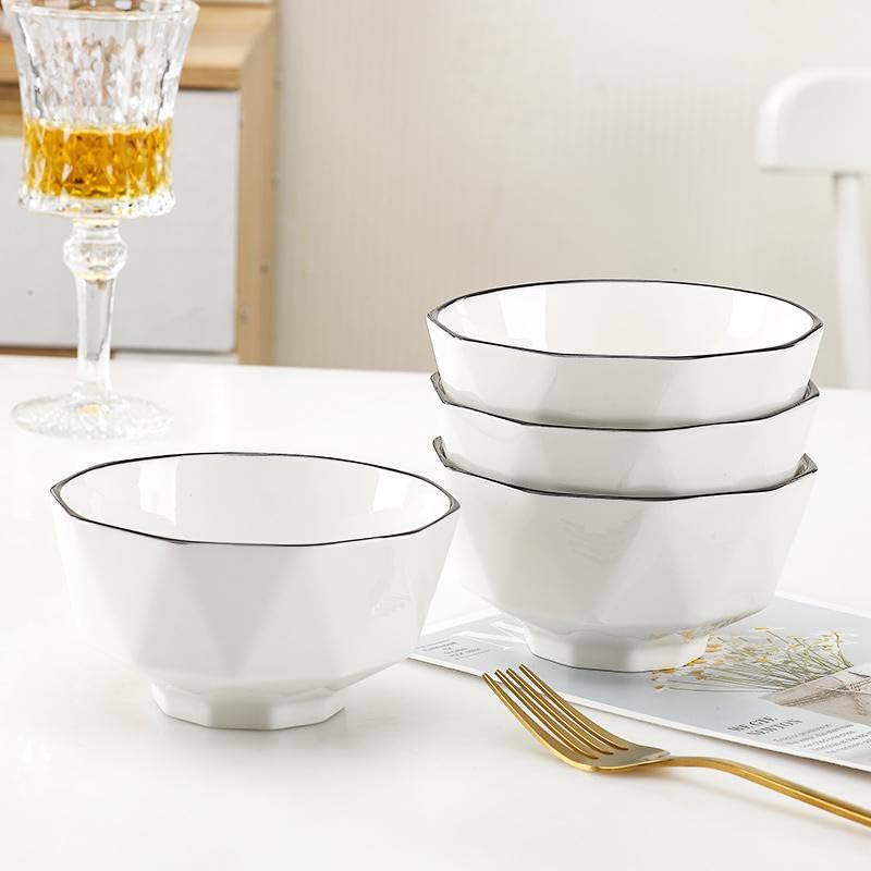 Generic - جيني اوعية ارز بورسلين بحواف سوداء، طقم من قطعتين، تصميم عصري، ابيض
