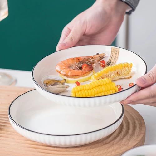 - تصميم أنيق: وعاء تقديم من البورسلين الأبيض يتميز بحافة سوداء متطورة وملمس مخدد أنيق على طول الجانبين للحصول على عرض أنيق.