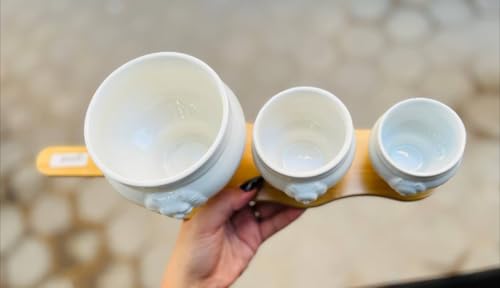 Generic - بولات تقديم بورسلين مع حامل خشب، 3 قطع، أبيض