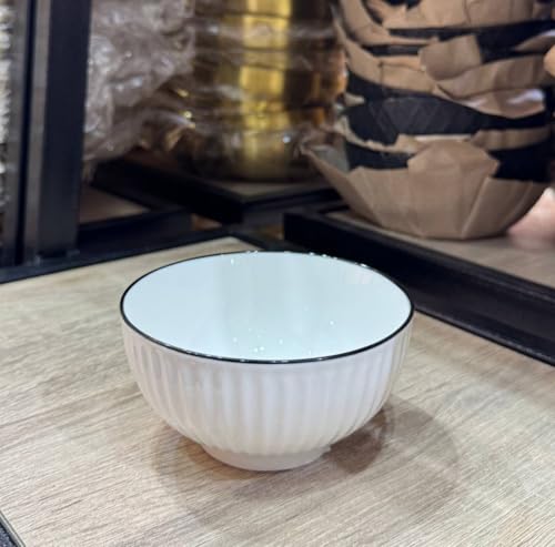 - تصميم أنيق: أطباق بورسلين عميقة بيضاء تتميز بنقشة مضلعة كلاسيكية وحواف سوداء أنيقة حول الحافة للحصول على جاذبية جمالية خالدة.