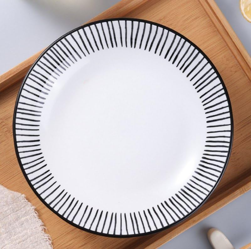 Generic - طبق تقديم من البورسلين بتصميم حافة مخططة باللونين الأسود والأبيض، طبق دائري