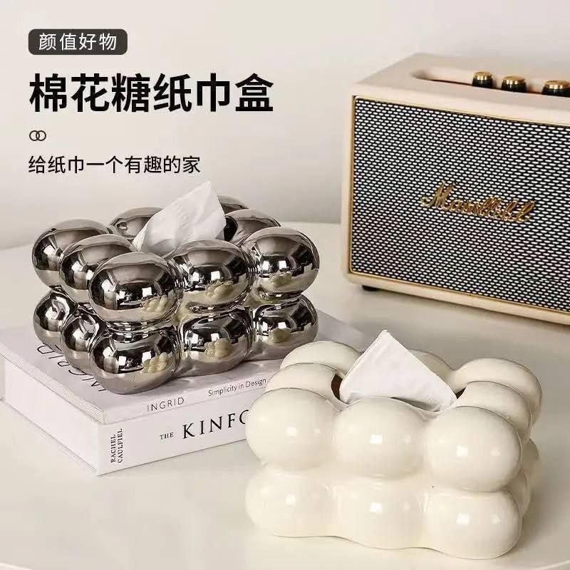 • موزع مناديل أنيق: تضيف علبة المناديل المصنوعة من البورسلين الفريد لمسة من الأناقة إلى أي غرفة بفضل تصميمها الأنيق الذي يشبه الفقاعات.