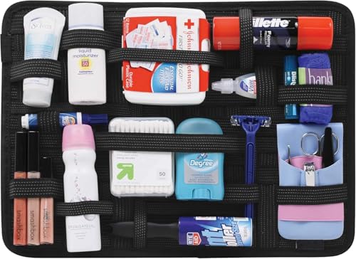 Generic - منظم شخصي محمول لتنظيم الأدوات الشخصية والإلكترونية وأدوات المكياج أثناء التنقل أو السفر. بتصميم مرن ومدمج، مع جيب خلفى ونظام مطاطي قابل للتعديل سهول الوصول والتخزين، اسود