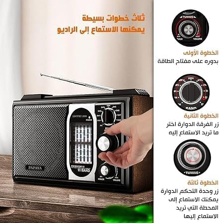 - حساسية عالية: استمتع بصوت واضح ونقي بفضل الحساسية العالية للراديو الخاص بنا، مما يسمح لك بالتقاط حتى الإشارات الضعيفة بدقة.