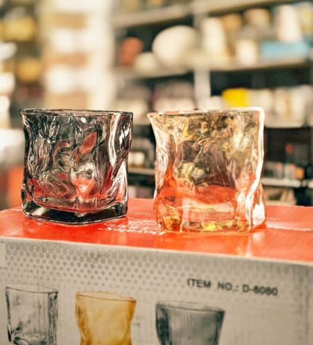 Generic - جيني اكواب ويسكي كريستال فاخرة، تصميم مضلع ملفوف، لون العسل والدخان، مجموعة من 6 قطع، اكواب شرب للعصير والكوكتيل .A2