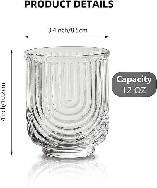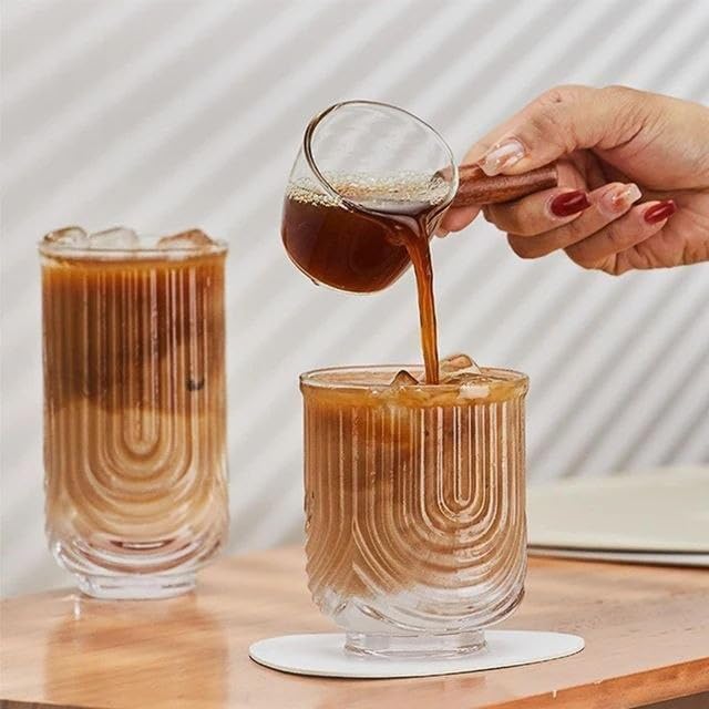 - تصميم فاخر: مج زجاجي مضلع أنيق يتميز بتصميم بنمط مموج مذهل يضيف الرقي إلى مجموعة أدوات الشرب الخاصة بك.