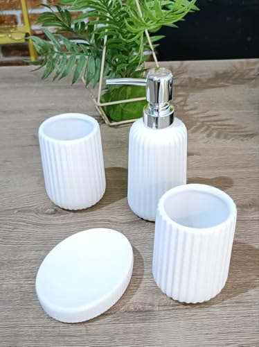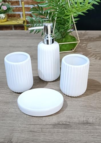 - تصميم أنيق: تتميز القطع الأربعة بتصميم أنيق وعصري يضفي لمسة من الأناقة على حمامك.