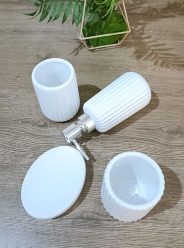 - مجموعة متنوعة من القطع: يحتوي على قطع مختلفة تشمل ديسبنسر، صابونة، حامل معجون أسنان، وحامل فرش الأسنان.