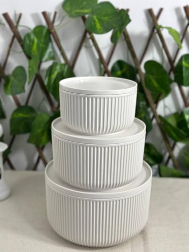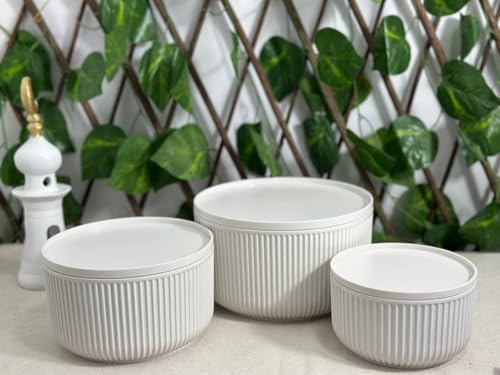 Generic - مجموعة علب تخزين طعام مضلعة فاخرة من الاكريليك الأبيض، منظمات ثلاجة قابلة للتكديس مع أغطية، 650 مل، 1300 مل، 2300 مل
