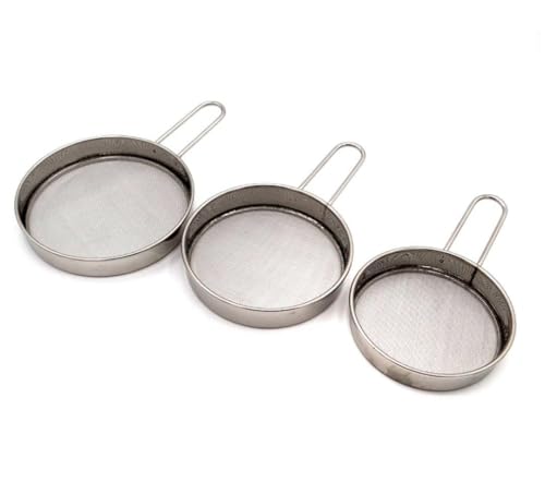 - مجموعة متعددة الاستخدامات: طقم منخل من فولاذ مقاوم للصدأ من ثلاث قطع بمقاسات 8 و9 و10 سم، مثالي لمهام غربلة الدقيق وغبار السكر وتصفية الزيت