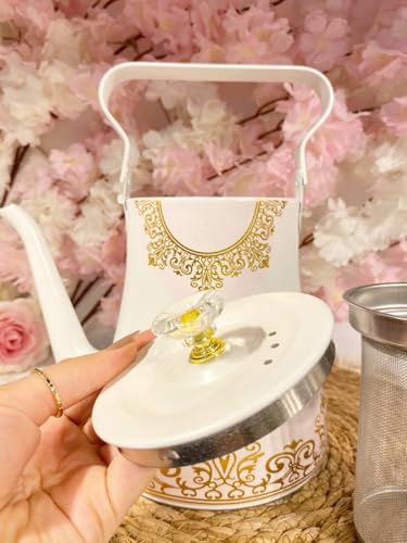 Generic - جيني ابريق شاي فاخر من الستانلس ستيل بلون ابيض، سعة 2 لتر مع مصفاة داخلية للاعشاب والنعناع